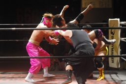 一方の関西軍(右写真)。OWFのOB3人。テイオー「そのタイツいいかげんやめろよ!」