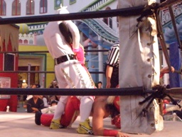 夜の部は反則の説明を追加。風神がピンクに首絞め(右写真)。