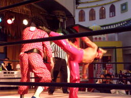 キッドがスワンにドロップキック(右写真)、カウント2。