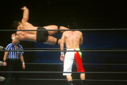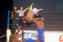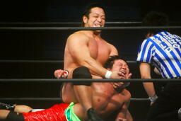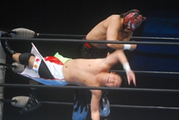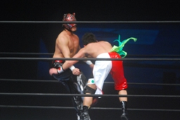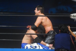 関本入ってブレーンバスター(右写真)、カウント2。タイガースにタッチ。