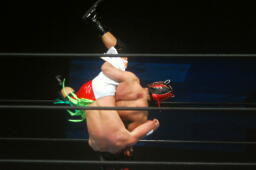タイガーススープレックス(左写真)、トマト2で返す。