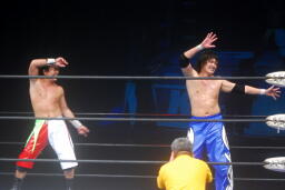 火野が今日勝ったトマトに締めるように指示(右写真)。しかしトマトがタイガースマスクの持つインディーJrへの挑戦表明をしただけで締めは辞退。