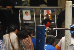 しかし2人の遺影まで行くと一礼(右写真)、リングに。