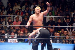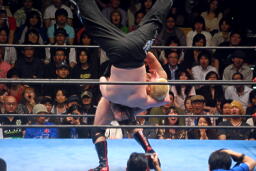 もう一発真剣から最後は垂直落下式ブレーンバスター(右写真)でカウント3。