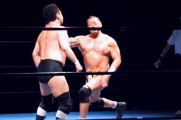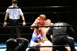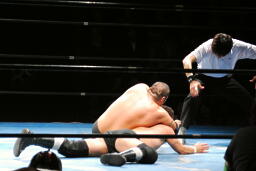 沼二郎が気仙沼落とし狙うがFUNAKIが阻止(左写真)。15分経過。