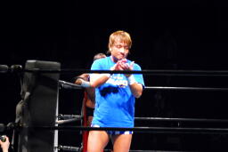 売店での2人(左写真)。東郷引退興行用のTシャツがこの日から発売。6/5かあ。ユニオン高岡と重なってるが・・・どうしよう?
