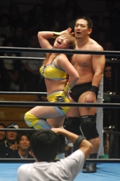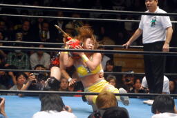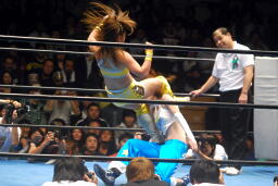 ナッキーバック取る、ゆずポンは高木直伝のスタナーでブレーク(右写真)、高木にタッチ。