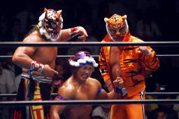ゲレーロがタイガーマスクのオーバーマスクをかぶって入場(右写真)。