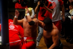 しかし石井はタイガーのマスクをはいで(左写真)逃走。これがマスカラ・コントラ・カベジェラなのに試合中からしつこくマスク剥ぎしてた理由か。