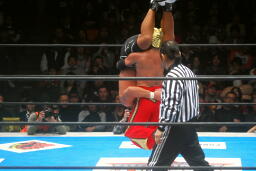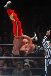 ブリッジで固め(左写真)、カウント3。
