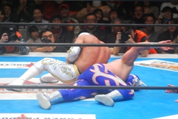 雪崩式デビルウィングスに(右写真)、カウントは2。これも凄技。