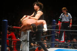 天山ヘッドバットからアナコンダスラム(右写真)、