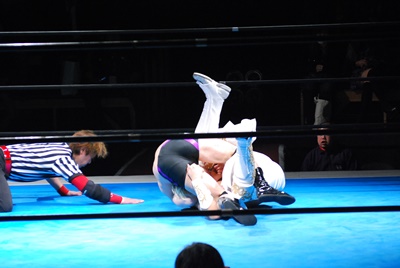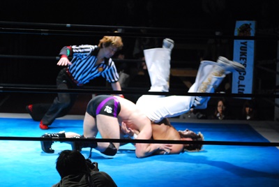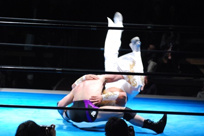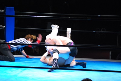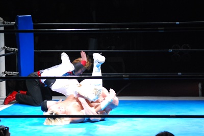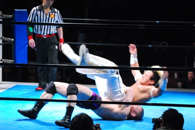 浪口キックをかわして逆さ押さえ込み(右写真)、カウント2。