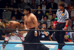 IWGPヘビー級選手権前の最後の前哨戦(右写真)。当然先発は棚橋と後藤。