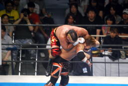 ロックアップでスタート(右写真)、天山バック取る、小島が腕を取って切り返す。