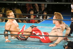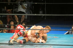 そのままフロントスープレックスに(右写真)、カウント2。