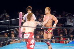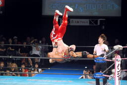 ロープに飛んでスライディングD(右写真)、カウント3。
