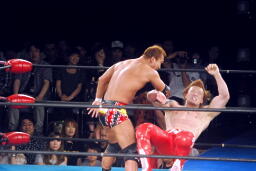 コーナーに上るとスーパーフライ(右写真)、カウント2。