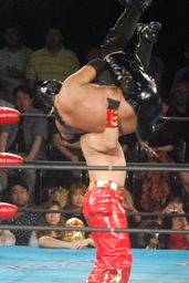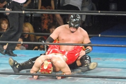 空牙はタイガースを肩車に捕え顔面スタンプ(右写真)、カウント2。