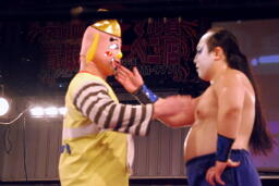 勘十郎が横に転がして押さえ込む(左写真)、カウント3。