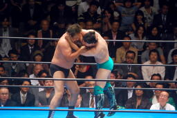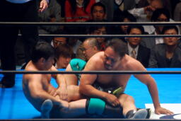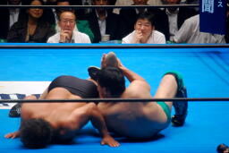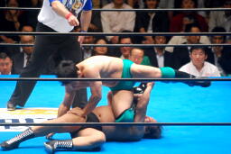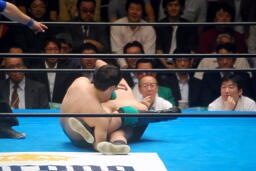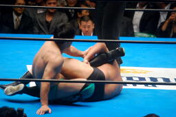 グラウンド卍固め(左写真)、山本ギブアップ。