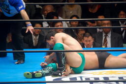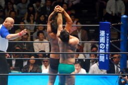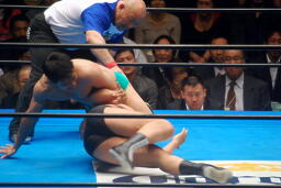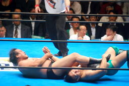 山本クロスヒールホールド(右写真)、石川ロープ。
