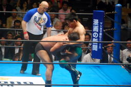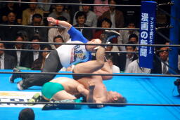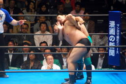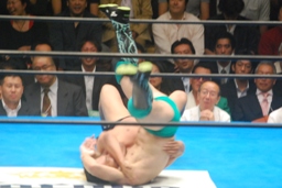 山本バックブロー、石川かわしてバックドロップ(右写真)、カウント2。