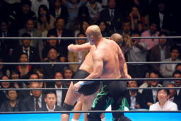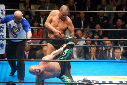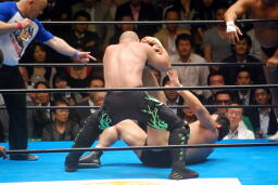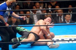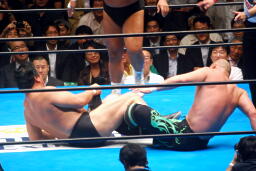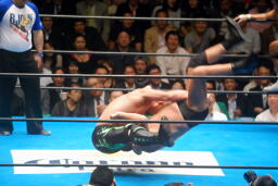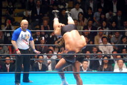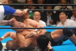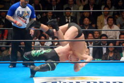 長井ヒザ蹴り、ダブルアームスープレックス(左写真)、カウント2。