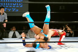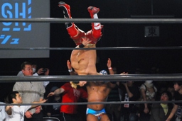 入り方、フォーム、早さが武藤敬司のムーンサルトによく似てる気がする(左写真)。カウントは2。
