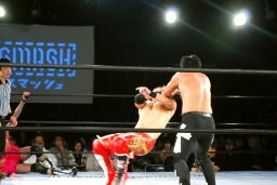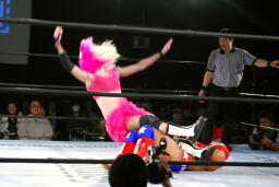 Mentalloにつまづいて転ぶ(右写真)。ジェシカカバー、KUSHIDAがカット。