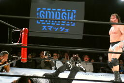 スターバックはTAJIRIを助けるかと思いきや、引き起こしてパイルドライバー(左写真)。FCF勢がセコンドを追い払ってリングを占拠。