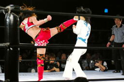 リンがドロップキックで先制(右写真)。