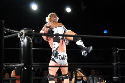 朱里サブゥーポーズ(右写真)。後楽園ではTAJIRI、朱里、サブゥー vs コバック&地獄の使徒2人(さっき紹介のあったアントニックとロビン?)。さらに華名の相手はFUNAKIに決定。
