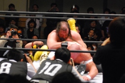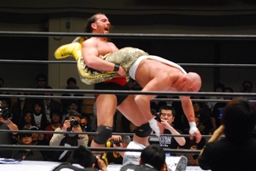 コバックがサブゥーをリングに戻す。持ち上げて(右写真)、