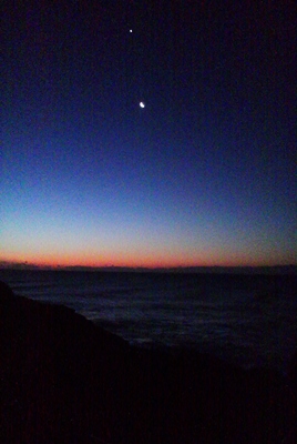 さすがに売店は営業中。6時まで時間をつぶすと空が白み始めたので外に。