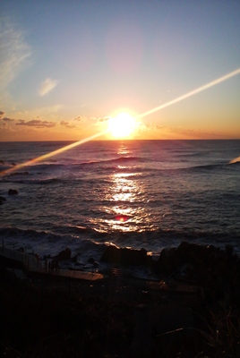 年越しプロレスが終わったのが0時30分。カウントダウンコンサートと重ならないよう急いで水道橋駅に行くと0時45分発に間に合ったので新宿に。ドロップキックで小一時間潰して新宿駅に戻り2時15分発の臨時特急で銚子へ。目的は初日の出と国盗り。車内で寝るつもりだったが明かりが煌々と点いてたり車内が騒がしかったりであんまり寝れず。4時43分銚子着。客が多いので連絡する銚子電鉄にはすぐには乗れなかったが、10分待ったら次のに座れたので逆にラッキー。5時に犬吠駅に着くが寒くて腹も減ったのでまずセブンイレブンに。おにぎり買って食べながら犬吠埼に。