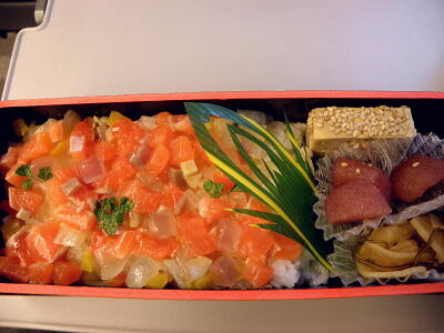 今年初の遠征。観戦記がたまっているので国盗りはやめて新大阪まで新幹線で一直線。朝食は東京駅で買った長野の駅弁「信州サーモン宝石箱」。マリネの駅弁というのは珍しいが、進んで食いたい味ではない。