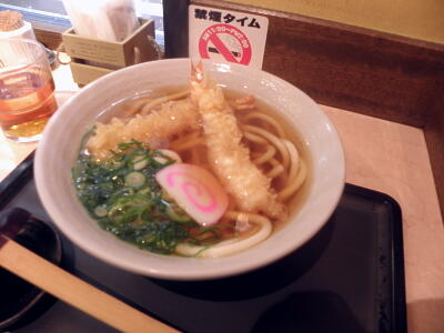 新大阪駅着。あたらしくできたっぽいうどん屋「汐屋」で天ぷらうどん。まあまあ。
