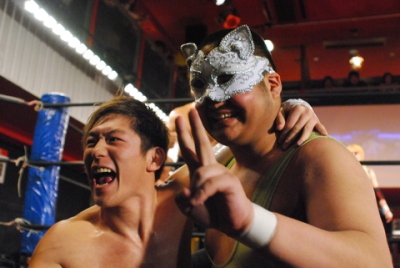 金山総合駅隣接の金山アスナルホールという微妙な名前の会場でまずは12時からDDT。案の定マイケルは「アナルホール」と言い、ディーノは「金も山もアスナルもホールも全ていやらしい」と言う。照明は暗め。もちろん見る分には問題ないが、写真が撮りづらい、って意味で。試合はやっぱりケニーとディーノのシングルに尽きるかなあ。KO-Dタッグはまだ王者組に強さを感じない。観戦記。