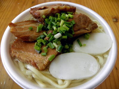 城址公園には11時20分の到着。30分に沖縄そば屋が開店したのでソーキと三枚肉の両方乗ったのを食う。うまい。