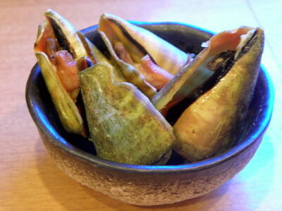 うだうだしてたら18時近くになったので今回の旅の最後の食事に。旭橋駅に貼ってあった広告に惹かれて海鮮居酒屋「ちゅらさん亭」に。5年前来た時にも地魚求めて寿司屋に行ったがあまり説明もなくわからなかったが、ここは親切に何の魚か、本土にいるどの魚の仲間かというのを教えてくれた。写真はお通しのコマガイ(テラジャー)。爪が出ていてそこを引っ張ると身が出てくるという変わった貝。
