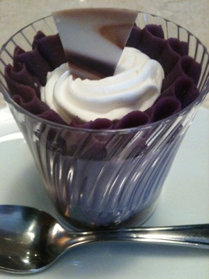 沖縄プロレス開場までの1時間には近くの「お菓子御殿」で紅いもムース&コーヒー。やっぱり眠いのだ。