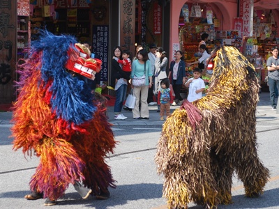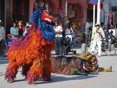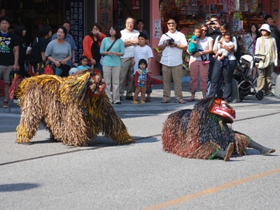 外に出ると琉球獅子舞やってた。獅子というよりちょっとした大型犬。