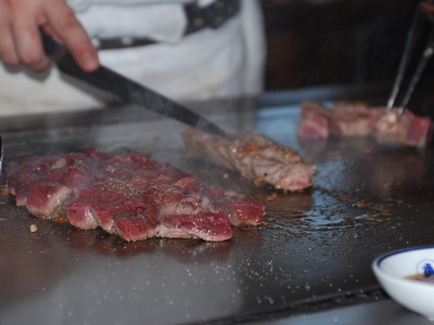 夕飯はデルアリ真向かいの「Sam's」でステーキディナー。シェフがパフォーマンスする店だったが、このシェフ見事に失敗。