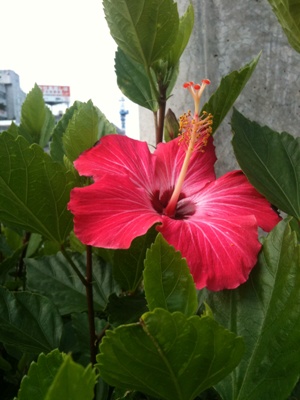 朝6時半に起きてホテルの朝食。7時半に出る。ゆいレール高架下にはハイビスカス。わざわざ植えているものではあるが見事な沖縄感。