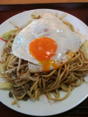 時刻は11時55分。BTの近くの「ヤンバル食堂」で塩焼きそば。麺は当然沖縄そば。塩辛い。12時25分発77番系統の路線バスで安慶名城に向かう。