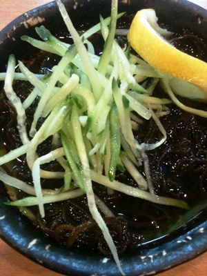 前回食べなかったのを中心に食べよう、ということでまずはモズク酢。