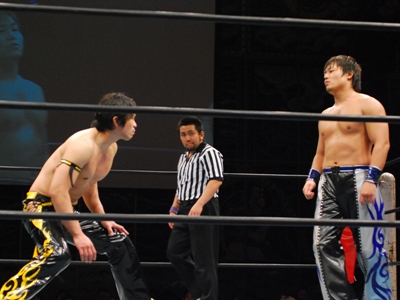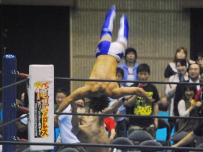 今日はDDTの10年半ぶりの京都大会。当然観光も絡めたいところだったが天気予報は大雨ということで出発もぎりぎりに遅らせて11時51分京都着。昼飯も摂らずにKBSホールに。すると選手を乗せたバスのトラブルで、選手たちはタクシーと新幹線で京都入り入りできたものの、グッズを乗せた大家のトラックが来てないということで売店には佐藤光留のみ。なんとかグッズが到着したのは開始10分前。それでもこういうピンチをお祭りごとのように盛り上げられるのはさすがDDT、さすが高木三四郎だ。試合はKing of DDTトーナメント準決勝&決勝。KUDOはケニー、HARASHIMAは入江を破って決勝に。そしてKUDOがHARASHIMAを下して7/24メインの切符を得た。となると相手はやはり石川修司であるべきかな。観戦記。