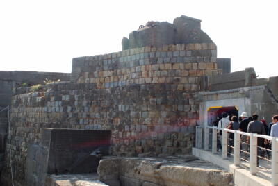 電車で大波止に移動。ターミナルビルで状況を聞くと上陸コースは一日二便で午後の便は「満席、キャンセル待ち。」明日にするか?しかし明日も満席と。一応キャンセル待ちに登録して待ってると出航10分前の13時になって「確保できました」の連絡が。これはラッキー。80人乗りの船は長崎港を出て外海へ。港の外だったか、軍艦島は。全然記憶がない。自分が長崎にいた頃は「近いけど行けない場所」だったからなあ。約50分で軍艦島到着。桟橋が壊れたままなので無理やり接岸して上陸する感じ。