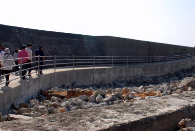 見学道を移動。今ツアーをやってる海運会社が見学歩道や見学広場、それを囲む柵を整備したから一般公開できてるんだろうな。見学できるのは島の南東海岸沿いの一部のみ。